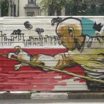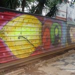 Ezek a graffitik a házunk előtt találhatóak. A felújítás alatt levő parkot kerítették el ezekkel a bádog lemezekkel. Jó ideje tarthat a park felújítása, ha az egész területet körbeölelő teljes felületet kihasználták. Én imádom. Mindenhol, a legváratlanabb zúgokban, stílusban és üzenettel. Mindig is tudtam, hogy a brazilok vizuális főmuftik. Sosem voltam egy szakértő, de teljesen odavagyok ezekért a ‘mesterművekért’ és megszállottá váltam- mindenhol ezeket fürkészem. Már csak meg kell örökíteni őket.