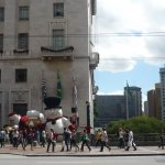 A munkahelyem és a metrómegálló között jó 20 percnyi séta van – fel a hegyre, le a hegyről. ( Igen, Sao Paulo is dimbes-dombos helyenként, mint Buda, csak pálmafákkal.) Amikor elindultam már csepergett, de már nem volt visszaút. Péntek esténként olyan dugók vannak a városban, hogy semmilyen járművel, ami föld felett közlekedik nem érdemes próbálkozni. Ha mégis, az ember számítson arra, hogy a péntek estéjét a dugóban tölti. Egyedüli megoldás metró vagy… helikopter.