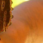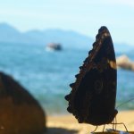 Praia do Cedro (Ubatuba) strandján ücsörögve lecsapott a sörünkre a természet csodája. Komótosan pihent a sörösdobozon és a karunkon – talán be is rugott. Ekkor adóditt az alkalom, hogy alaposan megvizsgáljuk és lefényképezzük a pillangó szárnyának külső mintázatát, ami nagy meglepetés volt, mert reptében a pillangót csak kéknek láttuk.